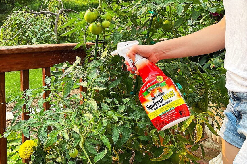 Notably, if you use a chemical repellent at one of the squirrel’s entry points into your home, it’s good to ensure the animal is out before application. After that, you can spray or scatter the repellent around the trees, plants, and entryways into your home.