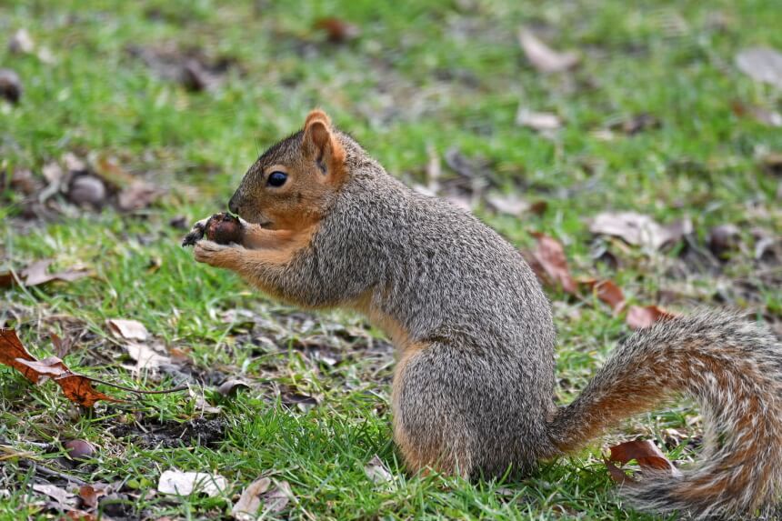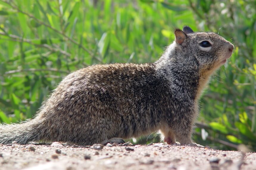 The western gray squirrel is much easier to identify with their silvery-gray backs and pure white bellies. They also have long, bushy, blackish-gray tails with white edges. The population is low enough that you often don’t have to worry about these species moving into your backyard. In fact, they’ve made it onto the International Union for Conservation of Nature’s red list of threatened species, although the concern of them going extinct is fairly low.