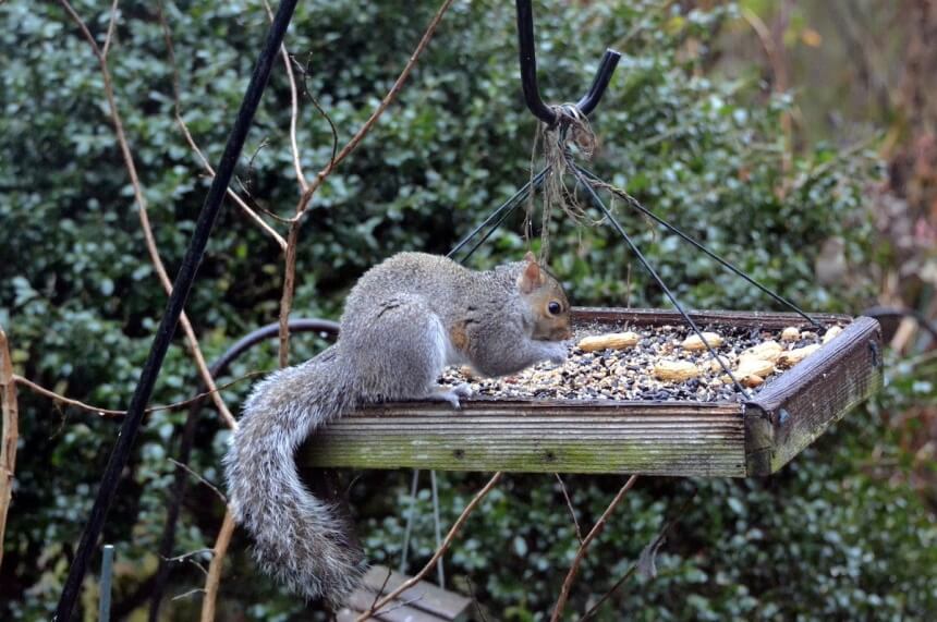If you have pets or bird feeders on your property, you’ll need to take extra care. Bag up the pet food once your furry friend is done eating and seal it before the next meal. Also, try to use bird feeders that are less accessible to squirrels. If you only put them on a tree, they should be pretty easy for the squirrels to reach.
